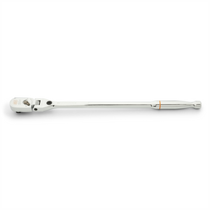 • 3/4" in. drive premium series chrome ratchet is 19-1/2" in. long. Tool features high polish chrome finish, knurled handles for non-slip grip and push button release for fast socket changes. Fine tooth ratchet mechanism enables access to tight places. Thumb lever directional switch allows easy one-handed socket removal.