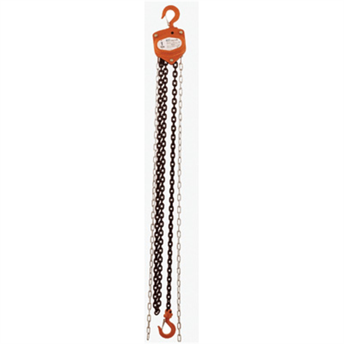 One of an extensive line of chain block hoist matches up with needs in industrial, automotive, farm and marine uses. Fully warranted for one year.